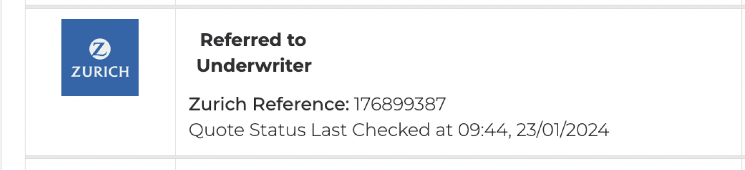 While in the Broker-Led Referral status, the broker can use the Check Status action to see if the insurer has completed their review or changed the status of the quote.