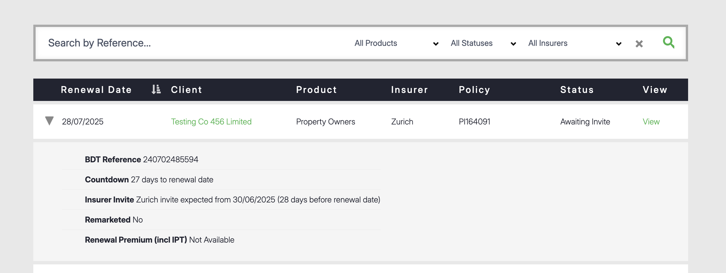 The Renewal Invite is initiated directly by the Insurer, not by the BDT platform. When an insurer issues a renewal invitation, BDT automatically applies this Renewal Invite to the relevant policy within your account. You do not have to do anything to receive or apply this invite within BDT.