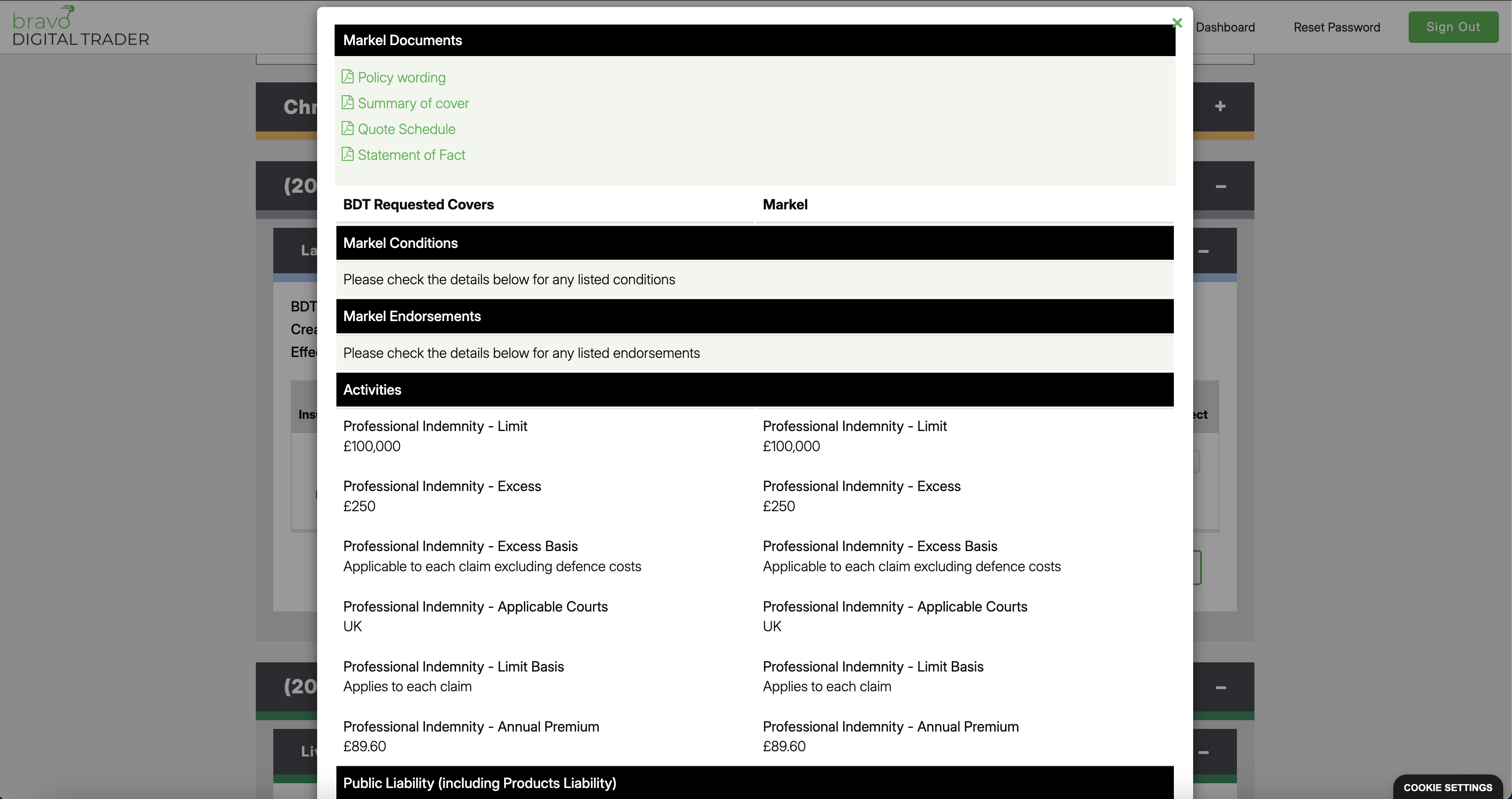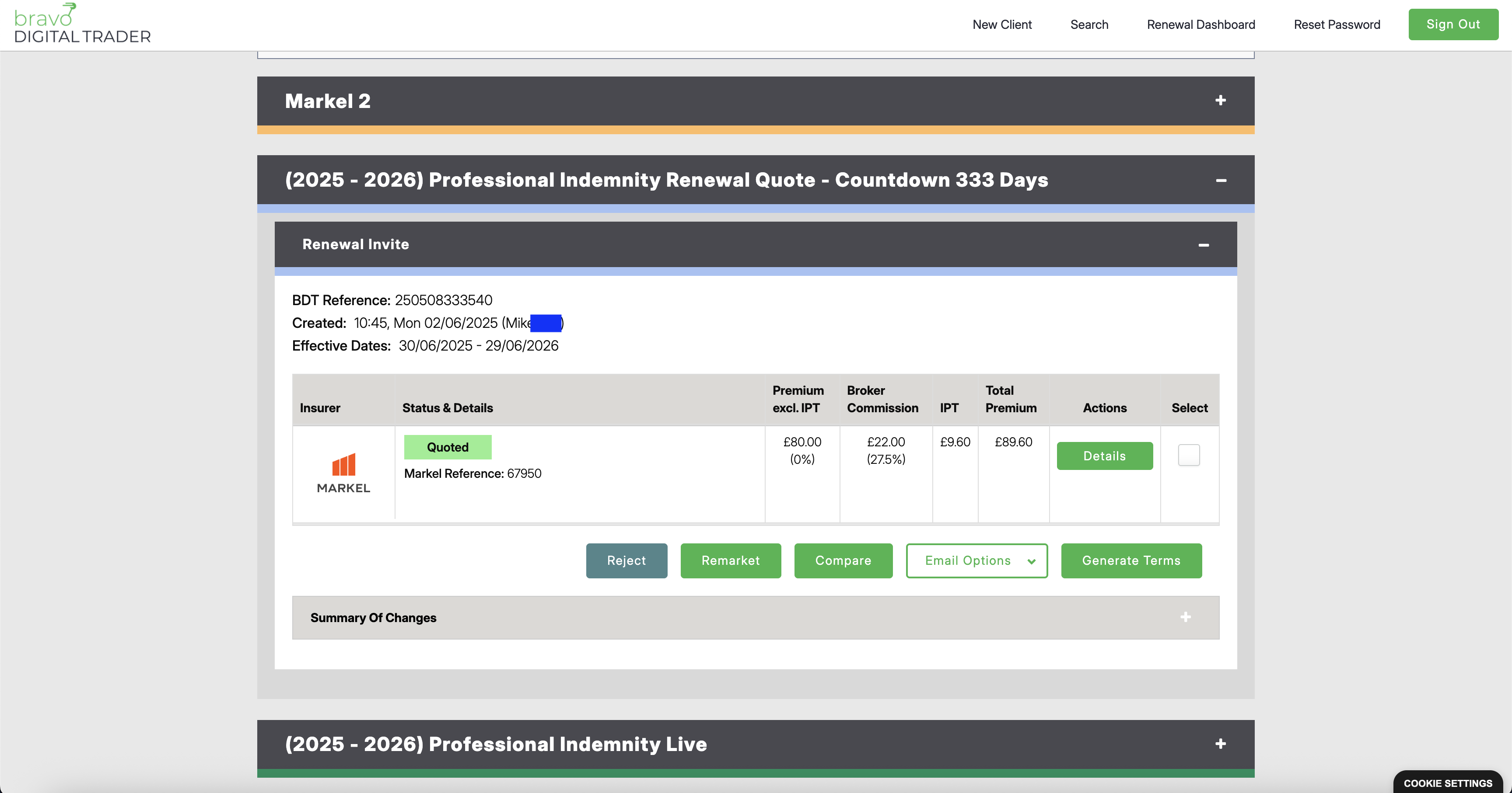 Remarketing for New Quotes: If the renewal terms aren't suitable, or you wish to explore alternative options, you can use the "Remarket" button. This allows you to remarket the policy to the full panel of insurers available, generating new quotes.