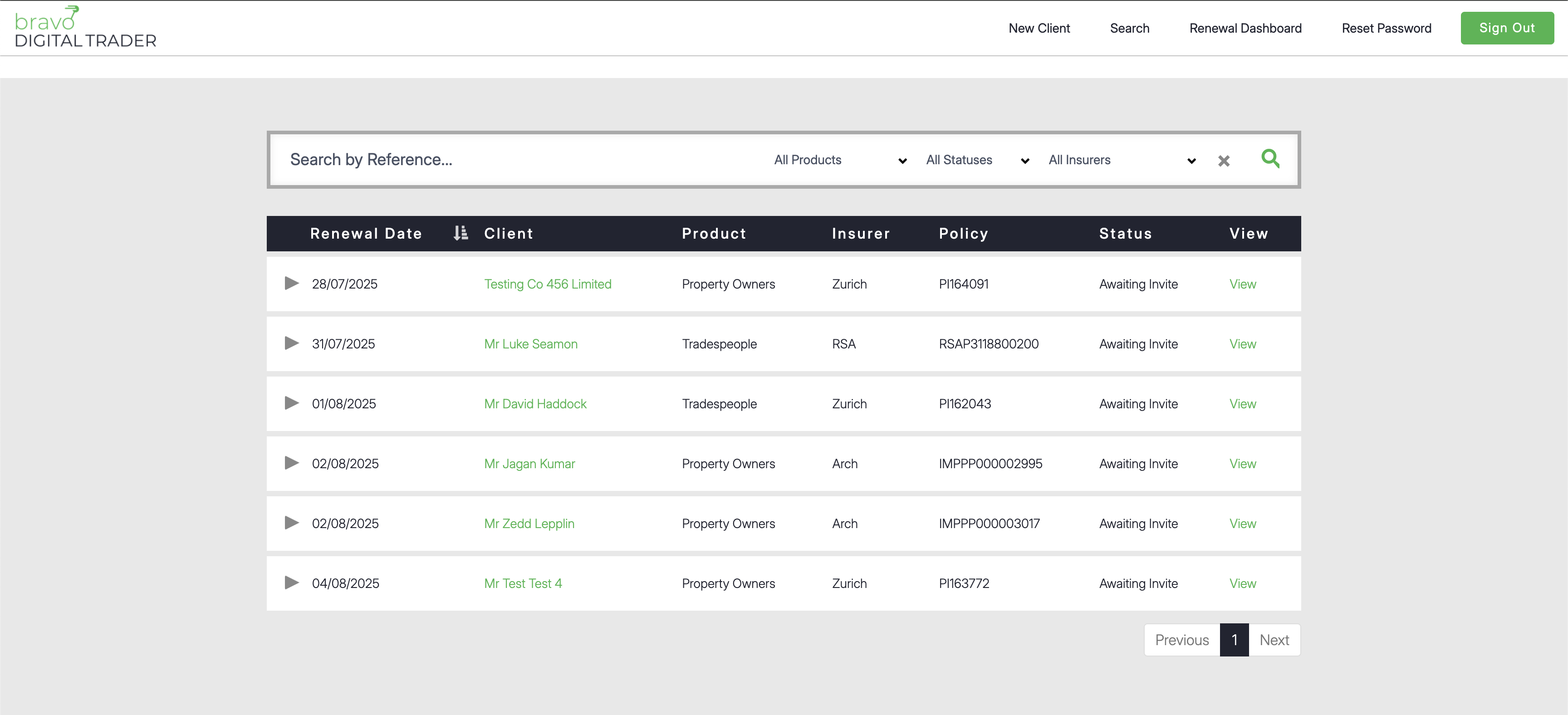 All your upcoming and recently lapsed renewal opportunities can be found on the Renewal Dashboard page, conveniently linked in the header of the platform.
